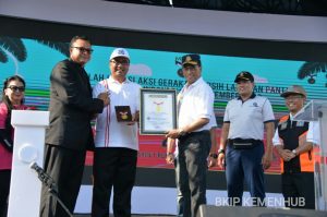 “Tujuan kegiatan ini utama kegiatan ini bukan hanya memecahkan rekor MURI saja, melainkan juga diharapkan dapat menurunkan peringkat Indonesia sebagai penghasil sampah di laut kedua di dunia,” jelas Menhub.