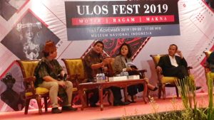 JAKARTA, ENIMTV (14/11/19) ─ Hari kedua penyelenggaraan ULOS FEST 2019 dilaksanakan Fokus Diskusi Kelompok (FGD) dan Talkshow tentang: Motif, Ragam, Makna Ulos, pada Rabu (13/11/2019) di Museum Nasional Indonesia, Jakarta Pusat. Acara FGD tersebut diangkat untuk menajamkan Sakralitas Ulos dan Tantangan Industri Kreatif di mana titik krusialnya dan titik temunya. Sementara acara Talkshow lebih menggali pemahaman dasar tentang motif, ragam, dan makna ulos.