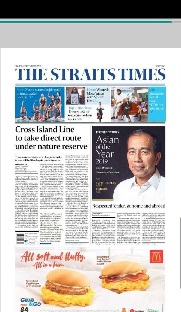sebagai The Straits Times’ Asian of the Year 2019 karena kepemimpinannya yang dihormati baik di dalam maupun di luar negeri (05/12/2019).