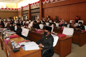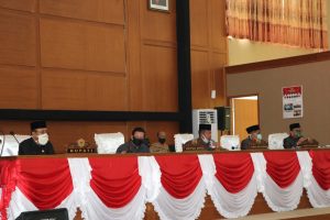 Rapat Paripurna DPRD Kabupaten Muara Enim dilaksanakan ditengah wabah Covid-19 dengan mematuhi protokoler kesehatan sesuai standar Kementerian Kesehatan RI.