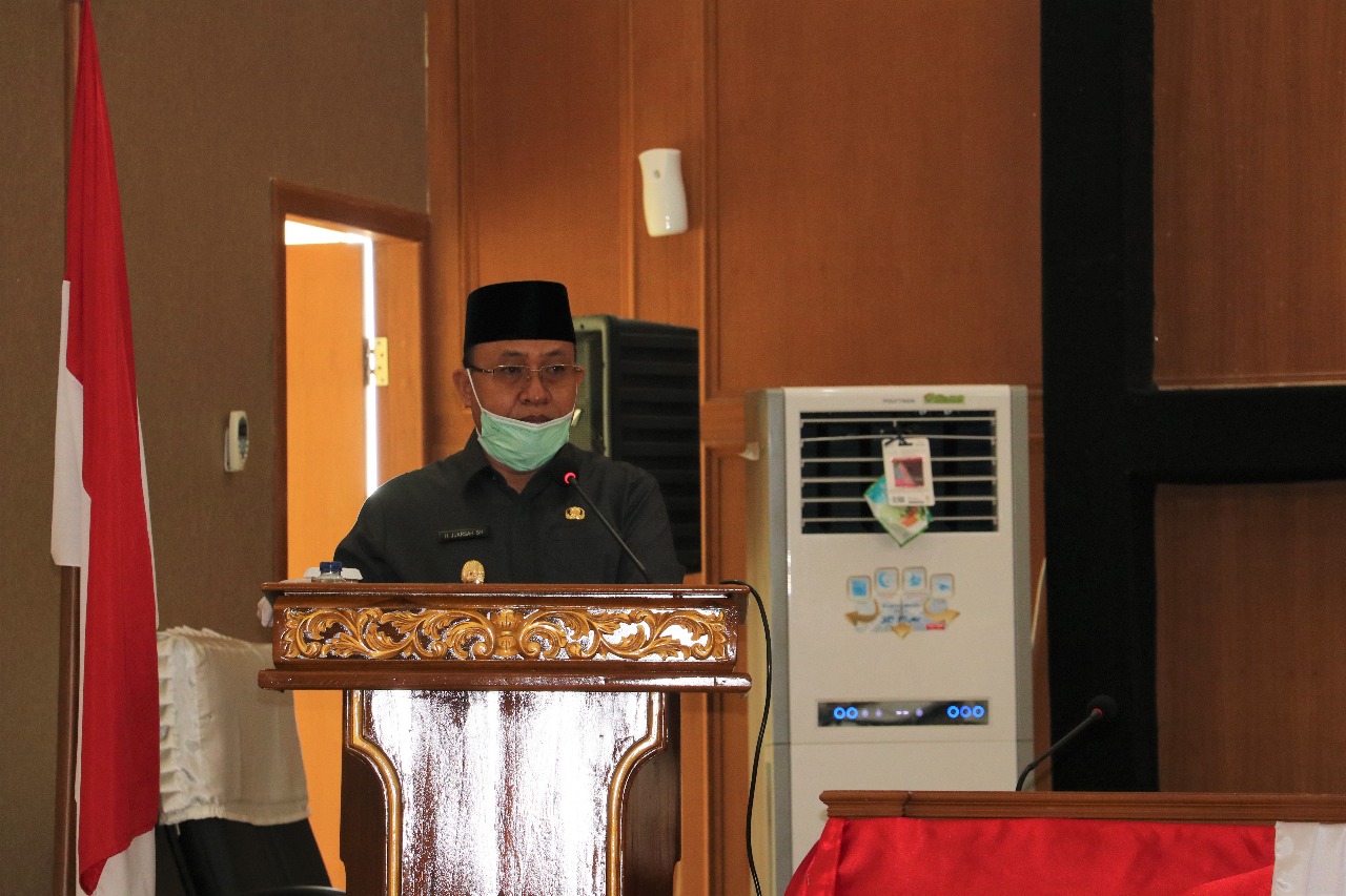 MUARA ENIM, ENIMTV – Plt. Bupati Muara Enim H. Juarsah, S.H. menghadiri Rapat Paripurna DPRD Kabupaten Muara Enim ke-18, perihal tentang penyampaian pendapat akhir Raperda Pertanggungjawaban Pelaksanaan APBD tahun 2019, di Gedung Paripurna DPRD Kabupaten Muara Enim, Rabu (29/7/2020).