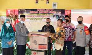 Dalam kesempatan ini dirinya menyampaikan berbagai program pembangunan sekaligus memberikan kenang-kenangan sebuah mimbar untuk masjid.