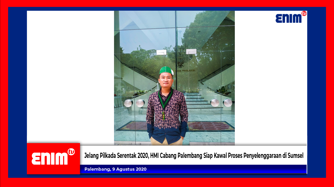 PALEMBANG, ENIMTV – Menjelang Pemilihan Kepada Daerah (Pilkada) serentak tahun 2020 yang akan dilaksanakan pada 9 Desember 2020 mendatang, Himpunan Mahasiswa Islam (HMI) akan turut mengawal proses penyelenggaraan Pilkada serentak 2020, khususnya di Provinsi Sumatera Selatan, mulai dari pencalonan, pemungutan suara, hingga penetapan calon terpilih.