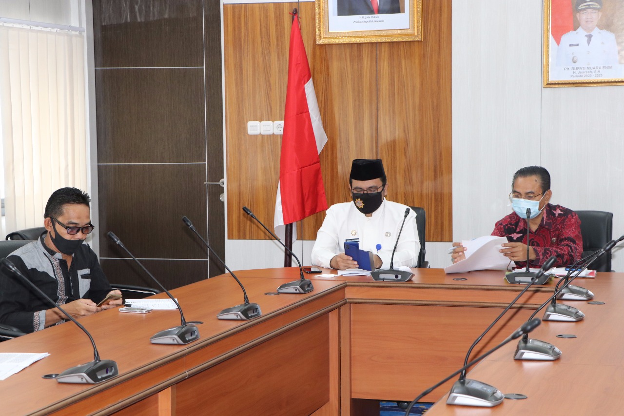 MUARA ENIM, ENIMTV – Asisten 3 Bidang Administrasi Umum Pemkab. Muara Enim, dr. Yan Riyadi, M.A.R.S. menghadiri sosialisasi kompetisi pelaksanaan pengaduan Pelayanan Publik tahun 2020 di lingkungan Kementerian Lembaga dan Pemerintahan Daerah melalui Video Conference (Vidcon) di Ruang Rapat Bupati Muara Enim, Jumat (14/8/2020).