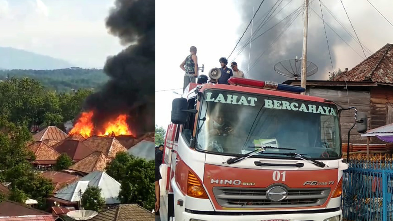 LAHAT, ENIMTV – Kelurahan Pasar Bawah, Kecamatan Lahat, Kabupaten Lahat membara, sudah belasan rumah habis dilahap si Jago Merah sejak pukul 15.00 WIB. Lambatnya kedatangan tim pemadam kebakaran sampai di lokasi menyebabkan api cepat melebar meluluhlantakkan puluhan rumah yang mayoritas masih terbuat dari kayu, Minggu (4/10/2020).