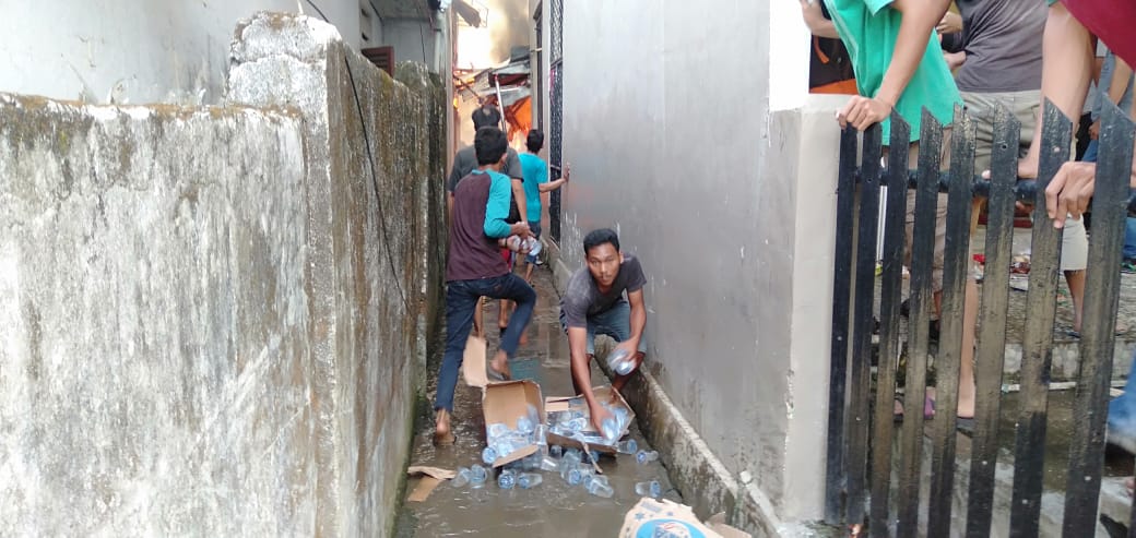 Warga yang panik tampak kocar kacir menyelamatkan harta bendanya. Karena lambatnya menunggu tim pemadam kebakaran sampai, warga setempat berinisiatif memadamkan api dengan air sumur yang ada. Bahkan ada sebuah toko kelontong (Pak Jhon) yang merelakan air mineral di tokonya untuk dipakai warga memadamkan api.