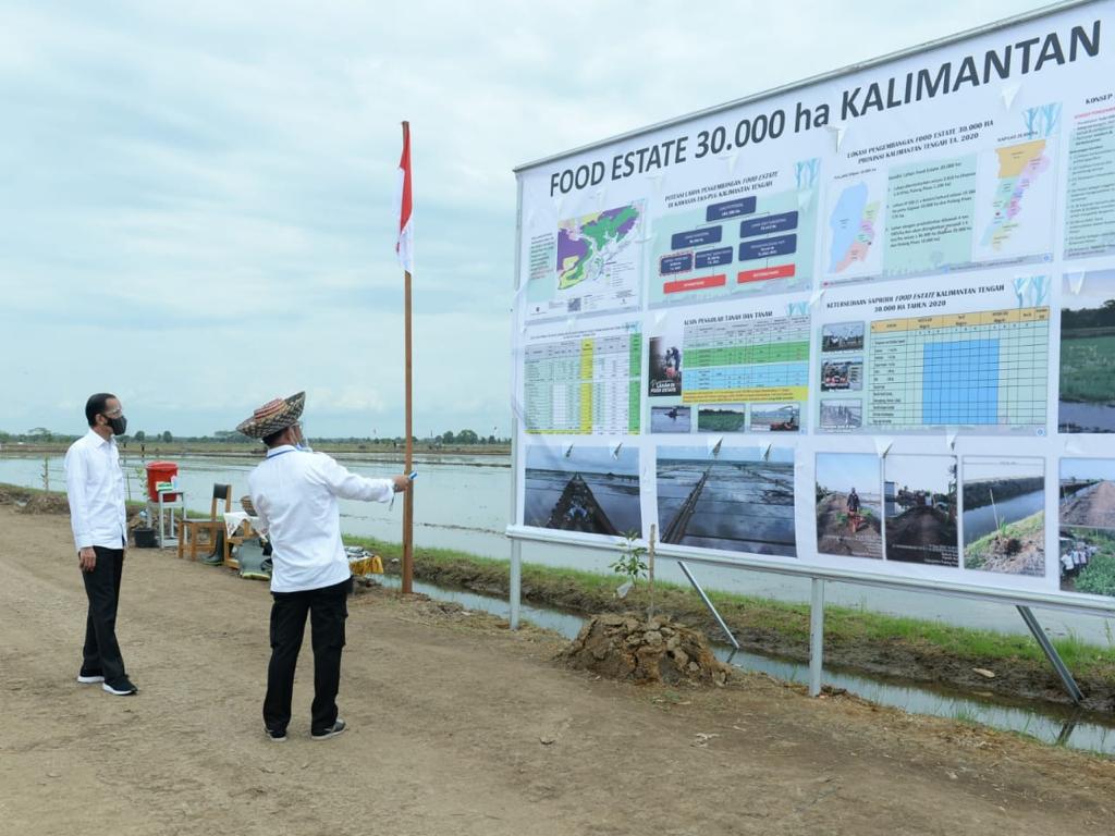 “Hari ini saya kembali lagi ke Provinsi Kalimantan Tengah, khususnya sekarang ada di Kabupaten Pulang Pisau. Kita ingin memastikan dimulainya pengembangan food estate,” ujar Presiden dalam pernyataannya selepas peninjauan.