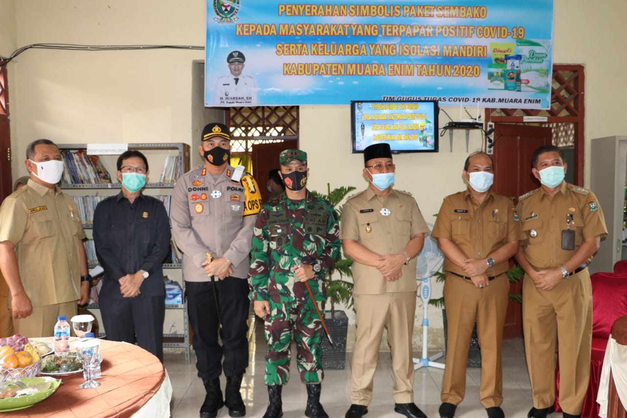 MUARA ENIM, ENIMTV – Setelah awal September lalu disalurkan bantuan paket sembako bagi 7.780 Kepala Keluarga (KK) kurang mampu di 10 wilayah kelurahan, Plt. Bupati Muara Enim H. Juarsah, S.H. didampingi Plh. Sekretaris Daerah, Amrullah Jamaluddin, S.E. kembali menyalurkan bantuan sosial berupa paket sembako, yang dikhususkan bagi 421 warga terdata yang terpapar positif Covid-19 dan keluarga dalam isolasi mandiri di Kabupaten Muara Enim.