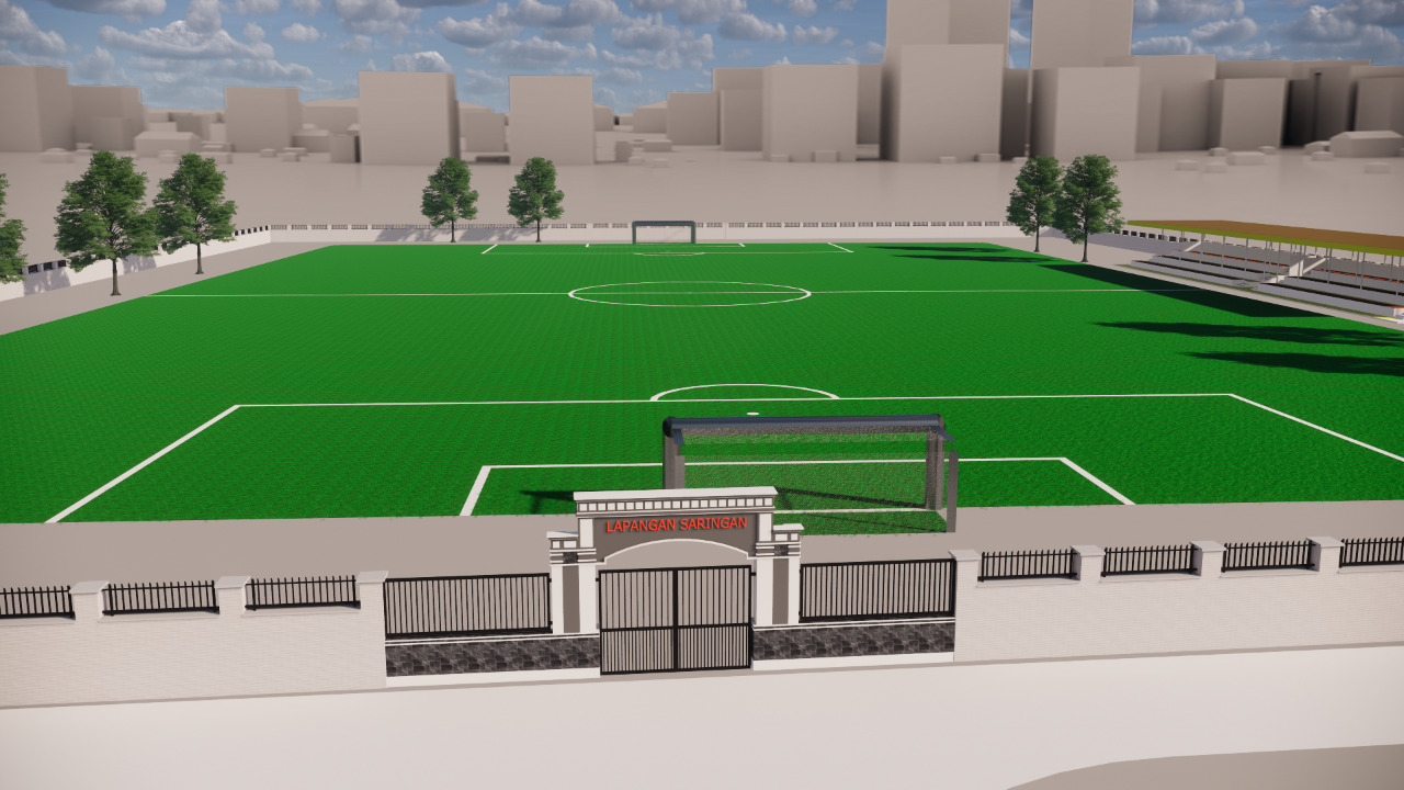 Saat ini progres pengerjaan Lapangan Sepakbola Saringan yang berstandar nasional memiliki luas lapangan bola 64 m x 100 m dan luas tribun bola kurang lebih 418 meter persegi tersebut, secara keseluruhan sudah mencapai 91,4 persen, dimulai sejak 20 Juli 2020 sampai dengan 16 Januari 2021.