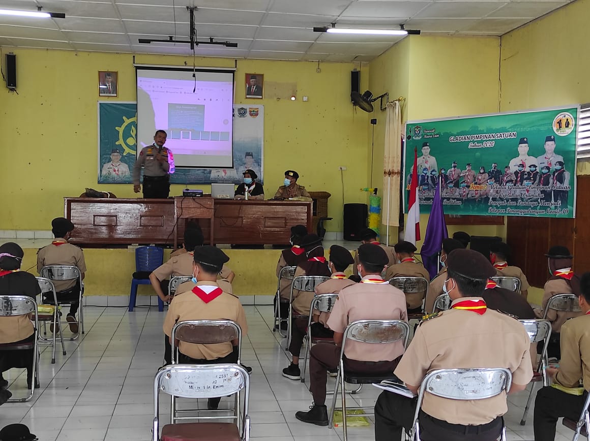 MUARA ENIM, ENIMTV – Dalam rangka membina hubungan masyarakat khususnya di kalangan remaja di wilayah hukum Polres Muara Enim, Kasubbag Humas Polres Muara Enim Iptu RTM. Situmorang mewakili Kapolres Muara Enim, memberikan materi pelatihan kepada anggota Pramuka di SMA Negeri 1 Muara Enim, Sabtu (21/11/2020).