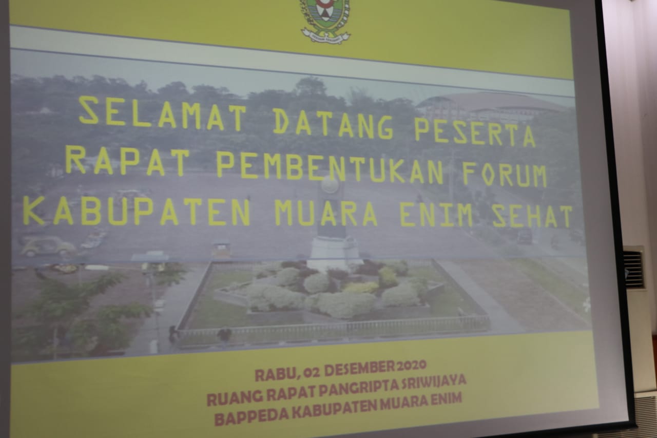 Pembentukan Forum Kabupaten Muara Enim Sehat tersebut dibahas dalam rapat yang dibuka oleh Plt. Sekretaris Daerah (Sekda) Kabupaten Muara Enim, dr. Yan Riyadi, M.A.R.S. di Ruang Rapat Pangripta Sriwijaya Bappeda Muara Enim, Rabu (2/12/2020).