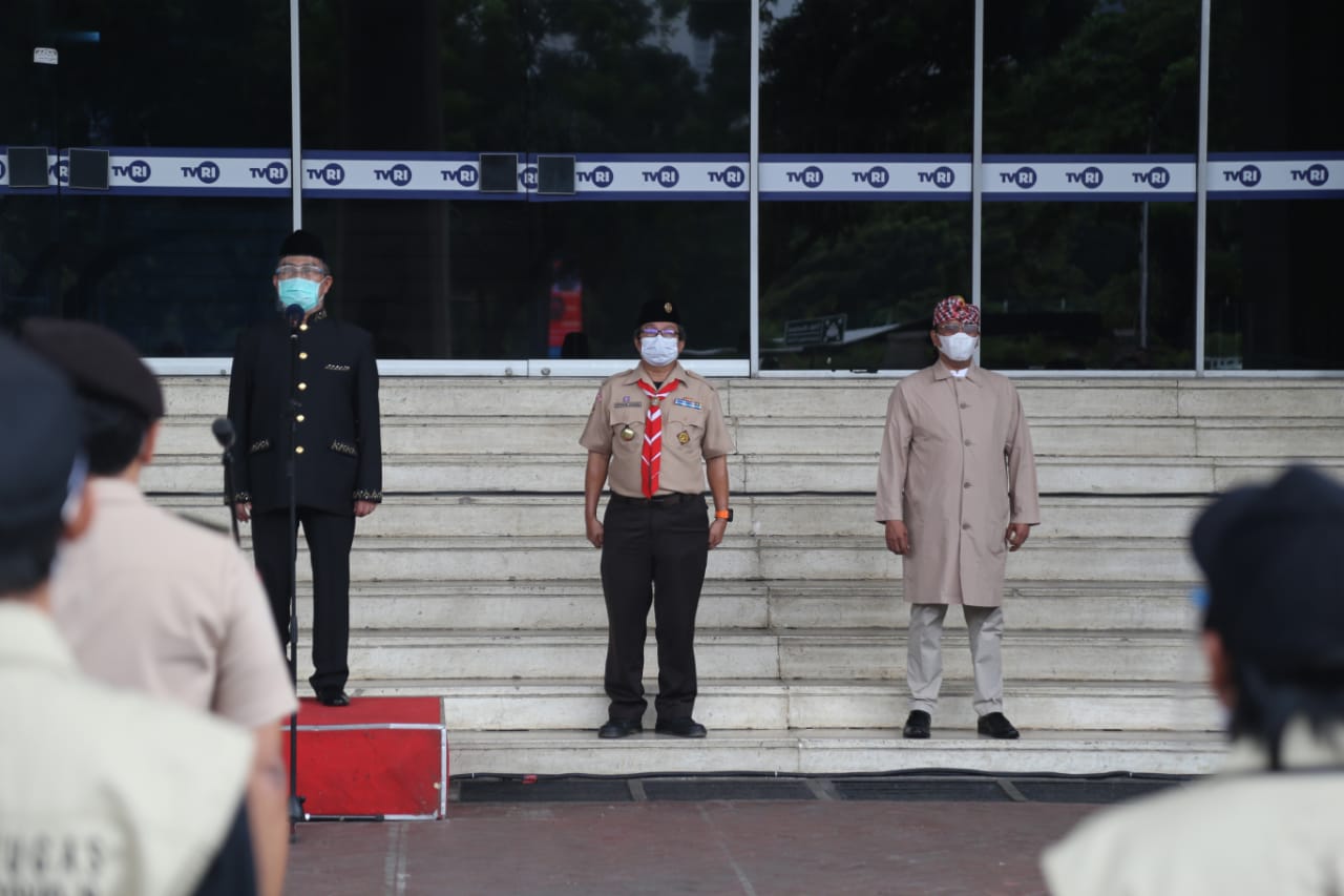 Mematuhi anjuran pemerintah, maka upacara bendera dilakukan secara virtual taping di halaman TVRI, Minggu 13 Desember 2020 lalu. Peserta upacara antara lain relawan BNPB, Kwarnas Pramuka, Perpusnas, Karyawan TVRI, dan seniman generasi lintas budaya. Bertindak selaku pembina upacara adalah Prof Jimly Assiddiqie, SH, Ketua Mahkamah Konstitusi 2003 – 2008 sekaligus Penasihat Yayasan Generasi Lintas Budaya.