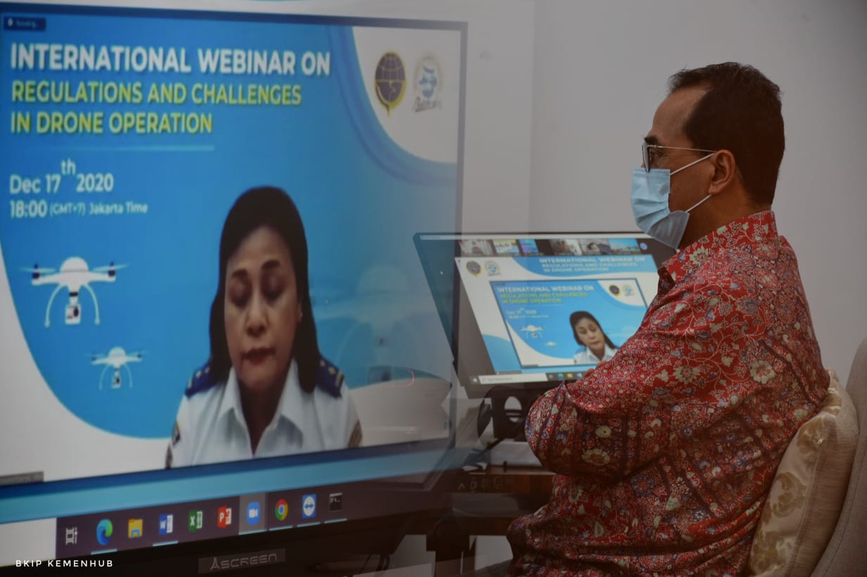 “Drone dapat berpotensi disalahgunakan untuk tujuan yang tidak baik. Drone menjadi salah satu dari lima peringkat ancaman teratas untuk keselamatan penerbangan, orang, dan aset di darat,” kata Menhub Budi usai menjadi keynoye speaker pada acara Webinar Internasional tentang Regulations And Challenges In Drone Operation, Kamis (17/12/2020) malam.
