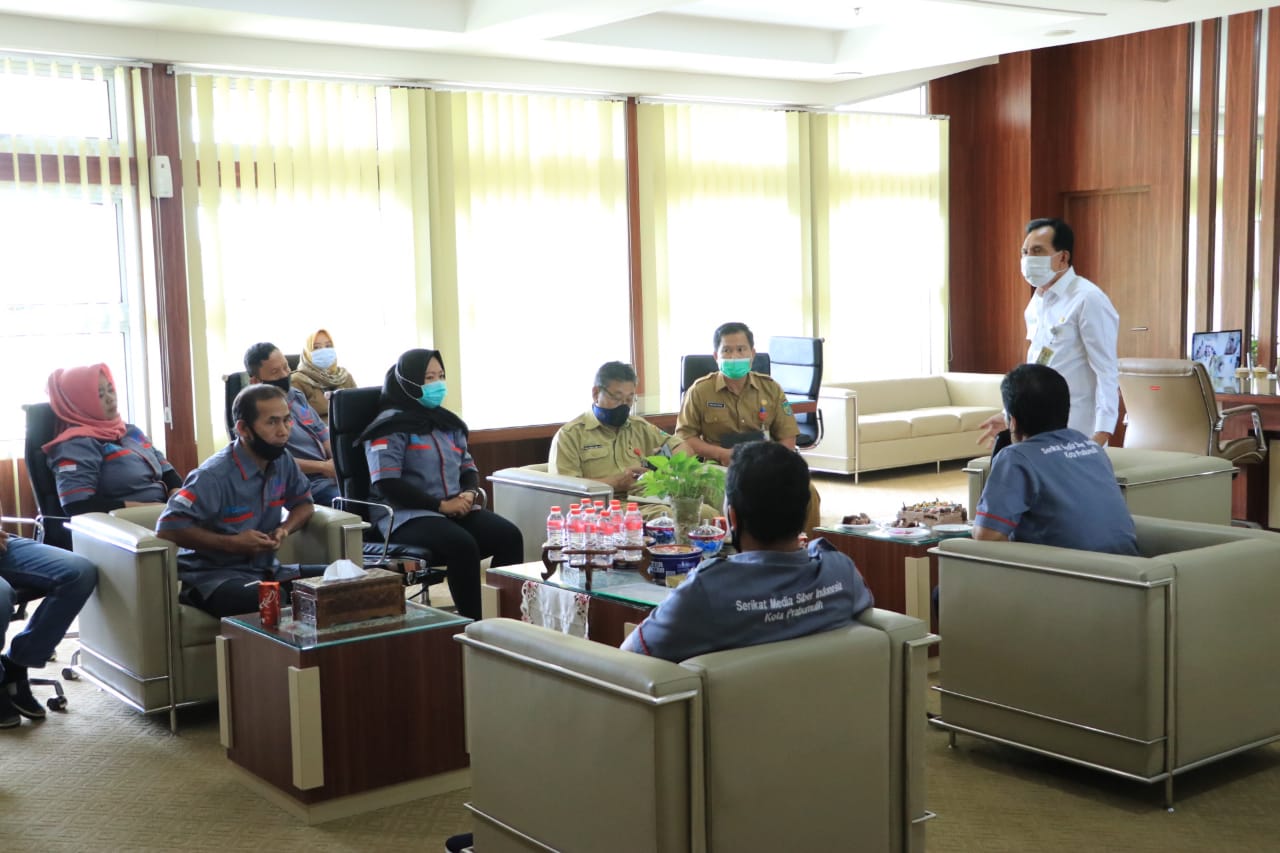 PRABUMULIH, ENIMTV – Pengurus Serikat Media Siber Indonesia (SMSI) Kota Prabumulih melakukan audiensi dengan Wali Kota Prabumulih, Ir. H. Ridho Yahya, M.M. di ruang kerjanya, Selasa (5/1/2021).