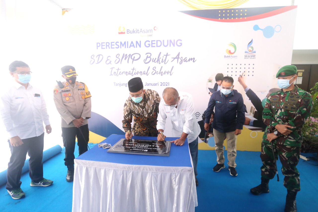 MUARA ENIM, ENIMTV – Direktur Utama PT Bukit Asam Tbk Arviyan Arifin dan Bupati Muara Enim H. Juarsah bersama-sama meresmikan gedung sekolah SD & SMP berstandar internasional sekaligus permukiman Bara Lestari I Tahap II, Kamis (14/1/2021).