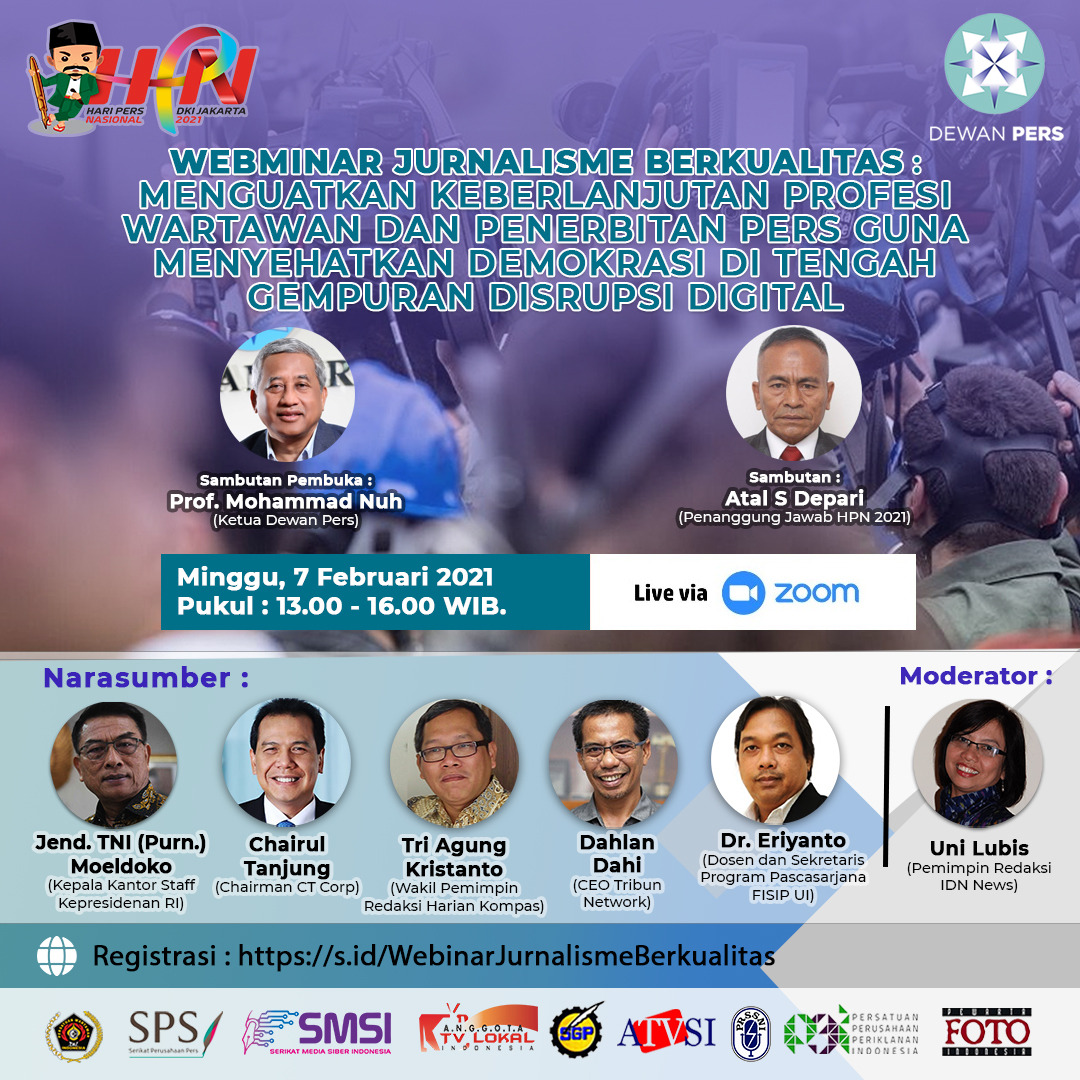 Hal itu disampaikan oleh seorang pengusaha sukses, pemilik CT Corp, Chairul Tanjung saat menjadi Narasumber dalam Webinar Hari Pers Nasional 2021 yang bertemakan “Jurnalisme Berkualitas: Menguatkan Keberlanjutan Profesi Wartawan dan Penerbitan Pers Guna Menyehatkan Demokrasi di Tengah Gempuran Disrupsi Digital”, Minggu (7/2/2021).