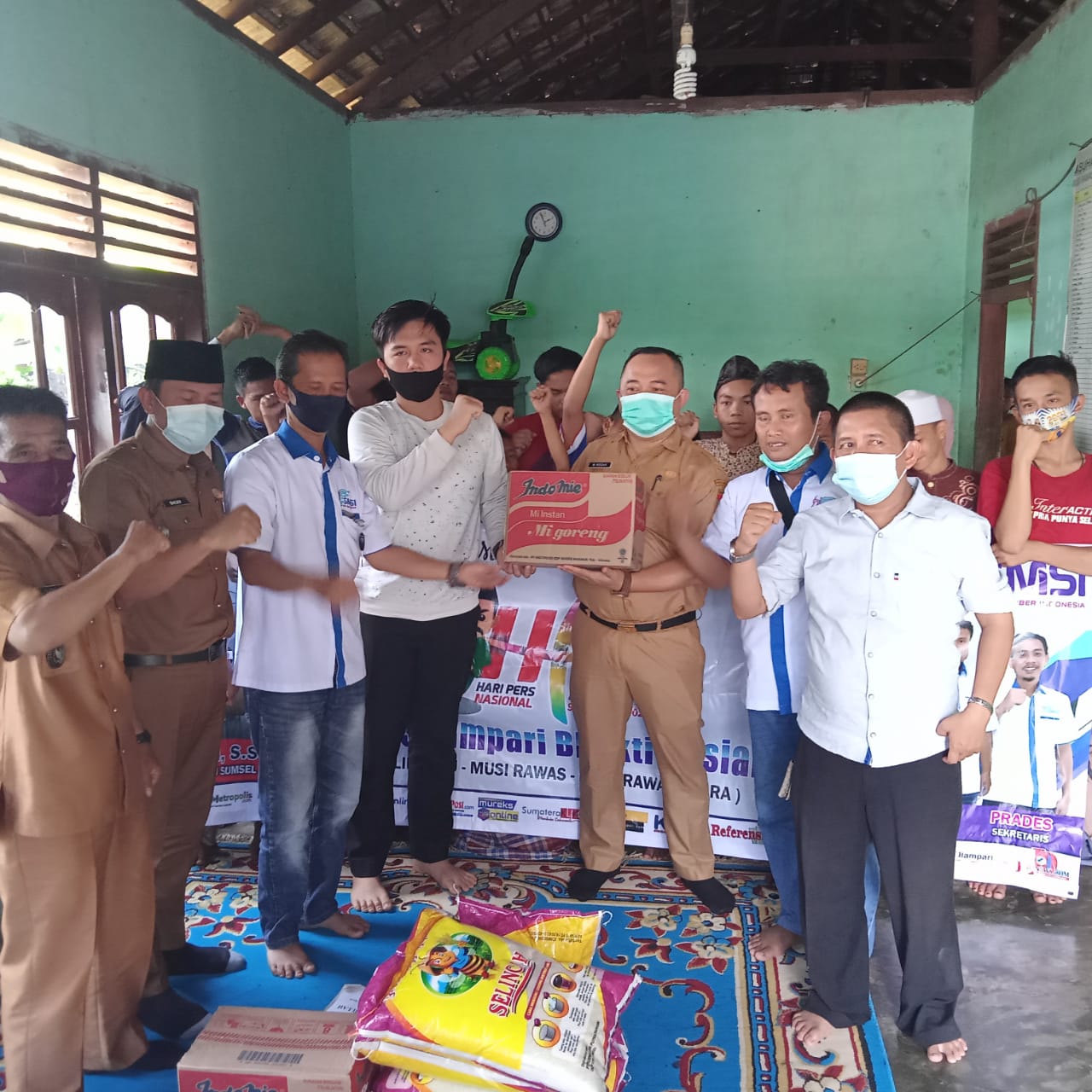 Selanjutnya, SMSI Silampari menyerahkan bantuan sembako, di antaranya Beras, Mie, Minyak Sayur, Tepung, Telur, Sarden. Bantuan ini didapat dari donatur (hamba Allah) yang tidak mengikat.