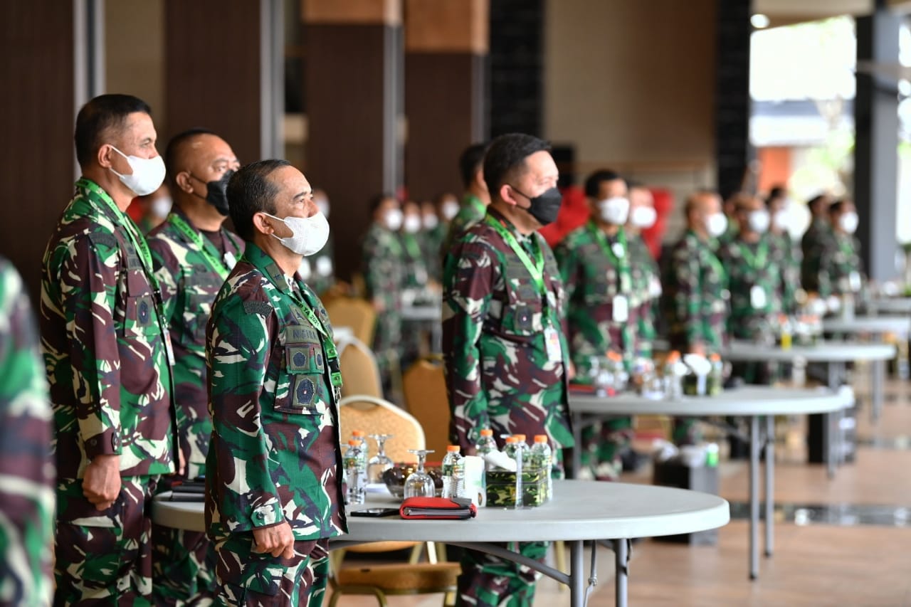 JAKARTA, ENIMTV – Kepala Staf Angkatan Darat (Kasad) Jenderal TNI Andika Perkasa menggelar rapat pimpinan, Rapim TNI AD TA. 2021 untuk menyampaikan berbagai kebijakan strategis TNI AD di tahun 2021 dalam upaya membangun TNI AD yang adaptif. Acara diselenggarakan di lantai dasar Gedung E, Markas Besar Angkatan Darat (Mabesad), Selasa (23/2/2021).