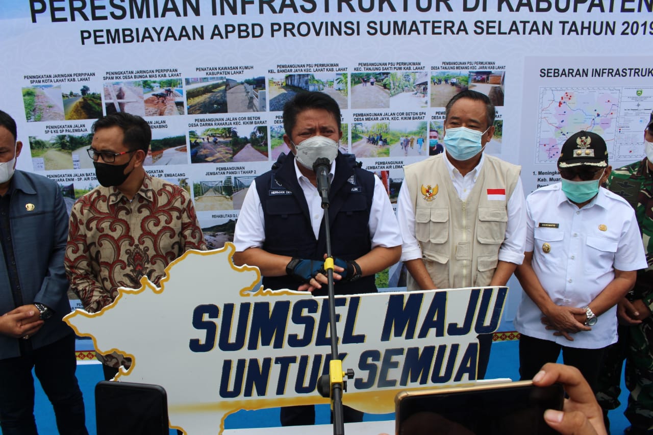 LAHAT, ENIMTV – Gubernur Sumatera Selatan (Sumsel) H. Herman Deru meminta kepada semua elemen masyarakat di Kabupaten Lahat untuk memelihara pembangunan yang sudah ada, apalagi pembangunan jalan dan jembatan yang didanai melalui APBD, APBD Provinsi maupun APBN.