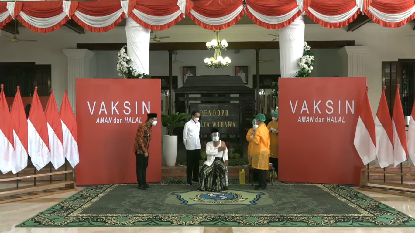 Dalam kesempatan tersebut, Presiden turut menyaksikan pemberian dosis vaksin AstraZeneca kepada Ketua Majelis Ulama Jawa Timur K.H. Hasan Mutawakkil Alallah. Vaksin yang sama juga diberikan kepada di antaranya K.H. Ahmad Rofiq Siraj hingga atlet sepak bola nasional Uston Nawawi.