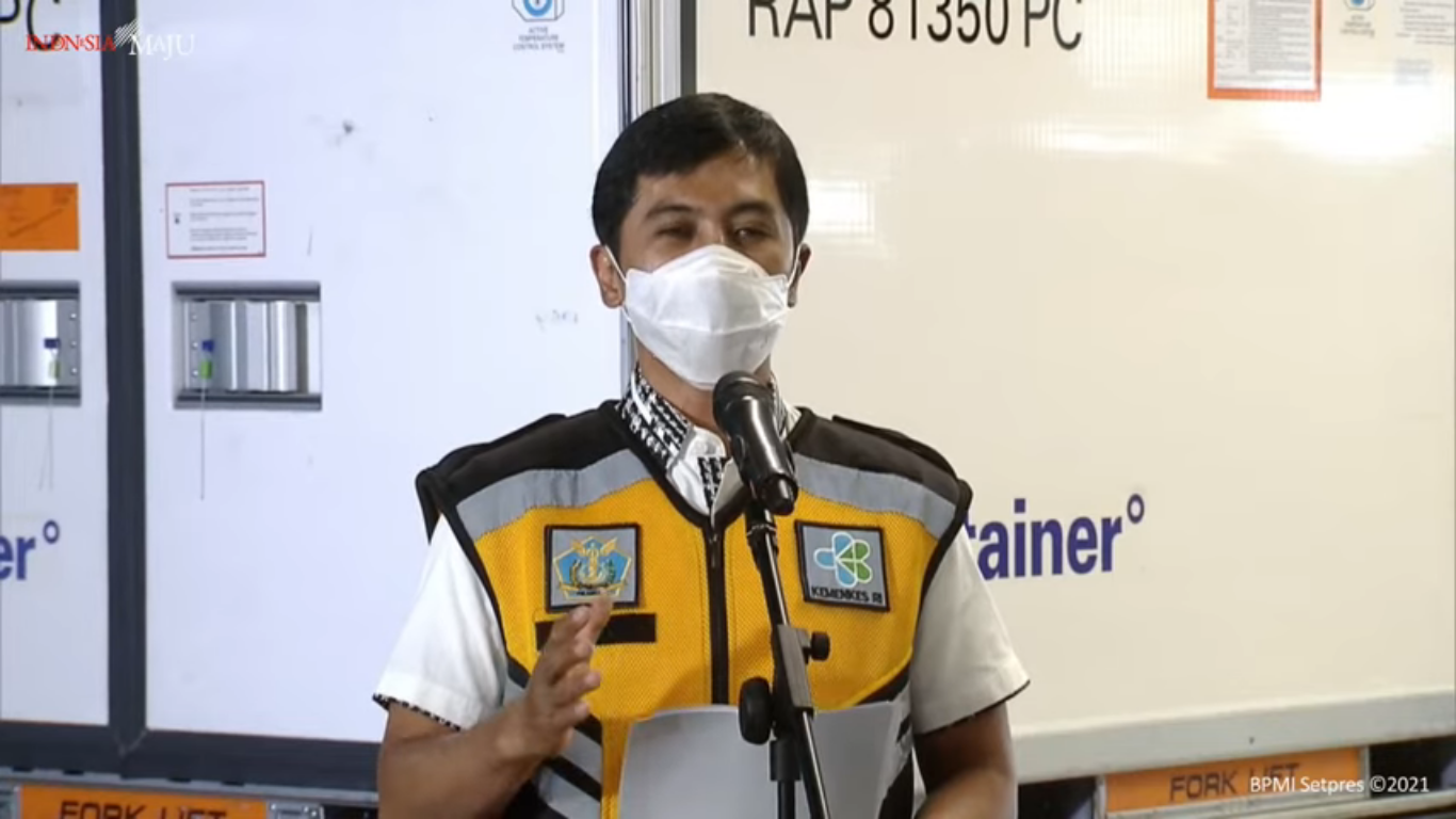 “Hari ini kita berhasil mendatangkan vaksin COVID-19 tahap ke-7 dari keseluruhan tahap, sebesar 16 juta [dosis] vaksin dalam bentuk bulk,” ujar Wakil Menteri Kesehatan (Wamenkes) Dante Saksono Harbuwono dalam keterangan persnya menyambut kedatangan vaksin di Bandara Soekarno Hatta.