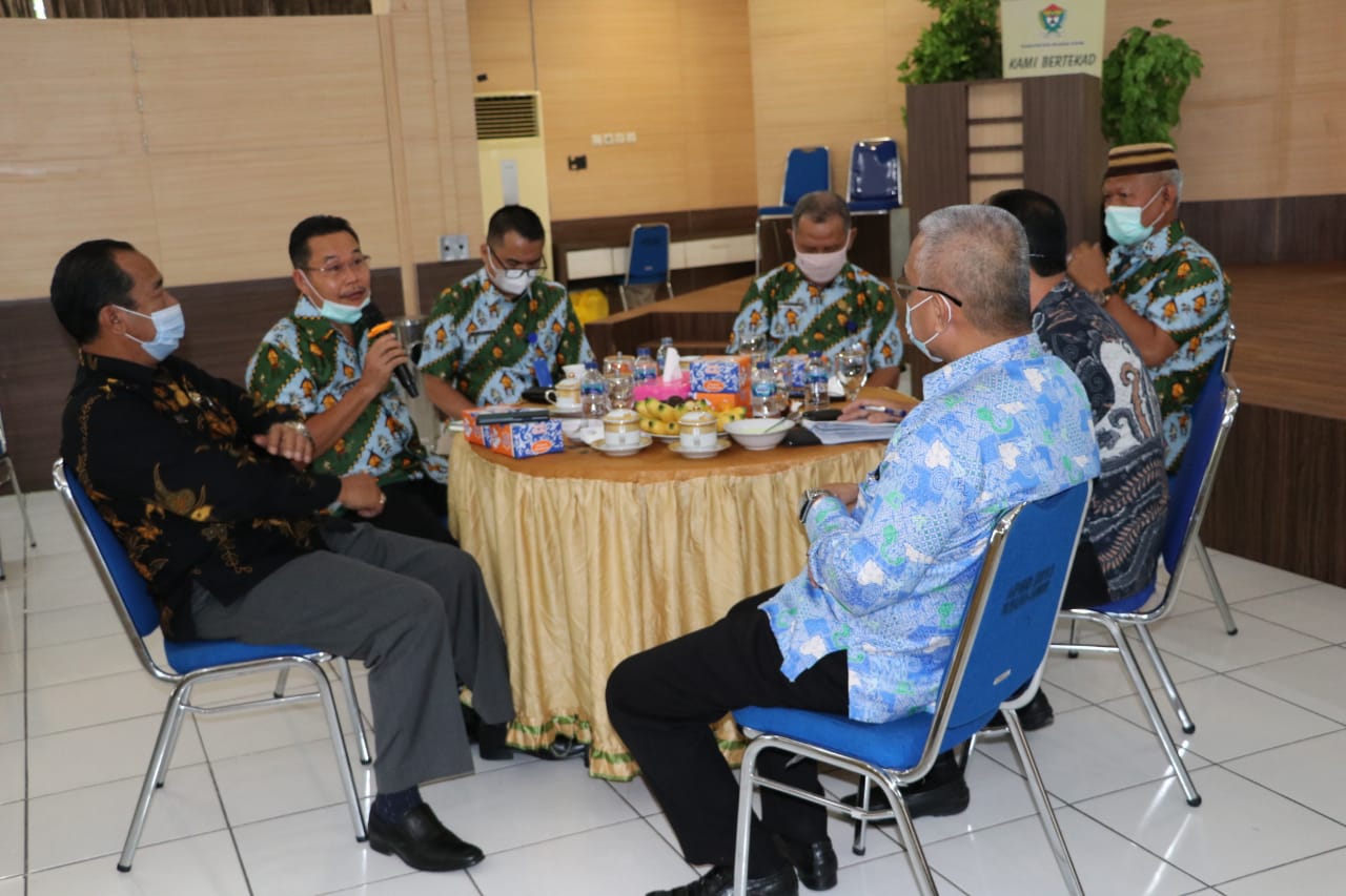 MUARA ENIM, ENIMTV – Guna meningkatkan kualitas kinerja dan pelayanan Rumah Sakit Umum Daerah (RSUD) dr. H.M. Rabain Muara Enim, Pj. Sekretaris Daerah (Sekda), Kabupaten Muara Enim, Drs. Emran Tabrani, M.Si. mengadakan rapat evaluasi bertajuk coffee morning bersama Kepala RSUD dr. H.M. Rabain beserta seluruh jajaran tenaga kesehatan. Rapat evaluasi itu digelar di Ruang Serba Guna RSUD dr. H.M. Rabain, Muara Enim, Kamis (25/3/2021).