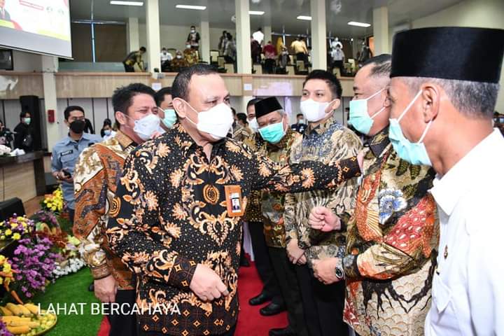 LAHAT, ENIMTV – Bupati Lahat Cik Ujang.SH didampingi oleh segenap Organisasi Perangkat Daerah (OPD) Kabupaten Lahat menghadiri Kegiatan Audiensi bersama Ketua KPK Firli Bahuri. Adapun audensi terkait Pengadaan Barang dan Jasa, Acara bertempat di Auditarium Graha Bina Praja Provinsi Sumatera Selatan. Kamis (15/4/2021).