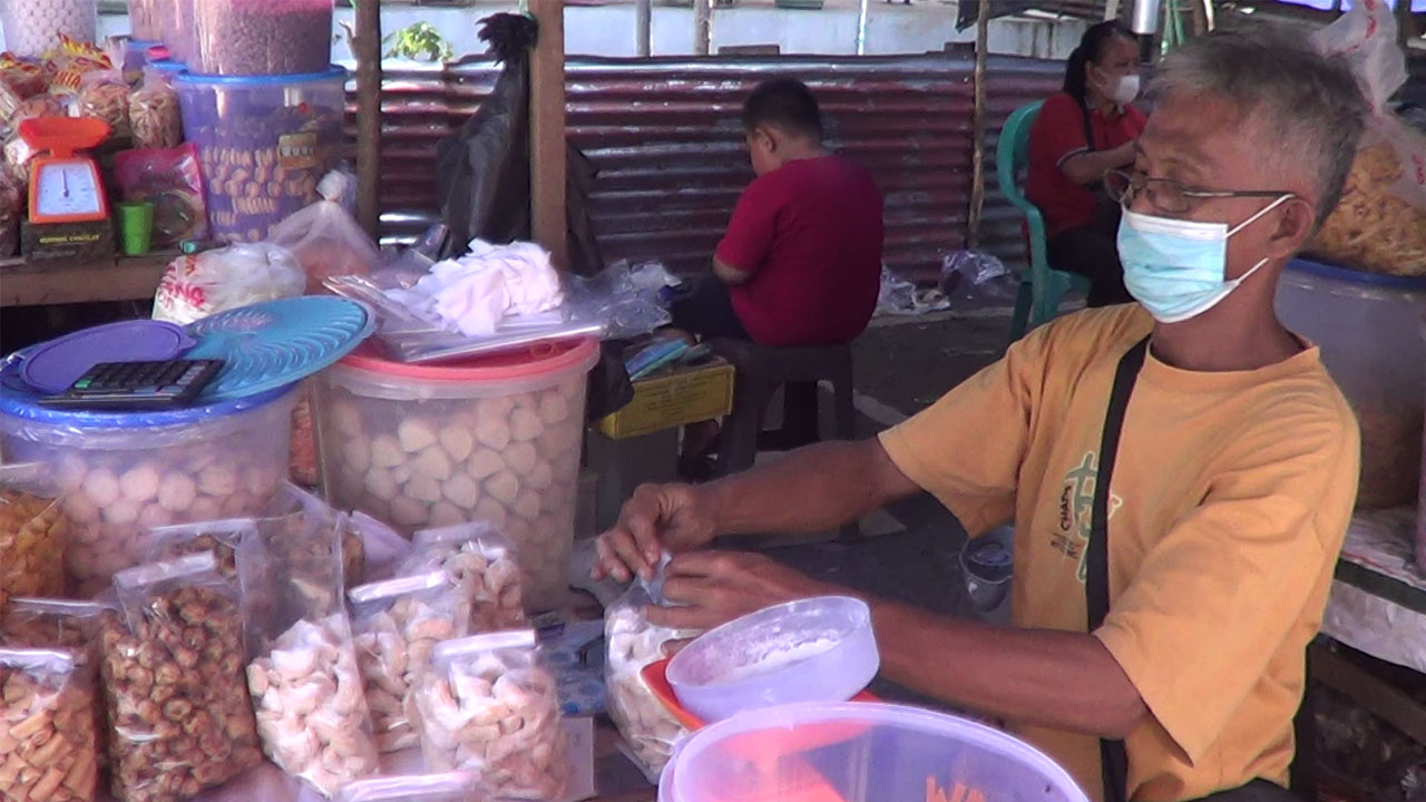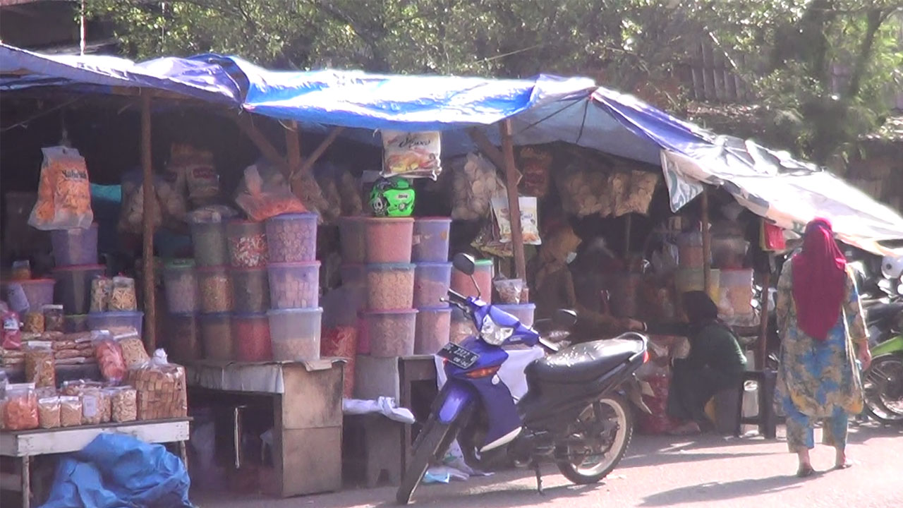Pasar Inpres Muara Enim terpantau belum terlalu ramai pembeli, namun terlihat beberapa orang melirik ke arah pedagang kue kering yang mulai memadati area pasar. (Aal)