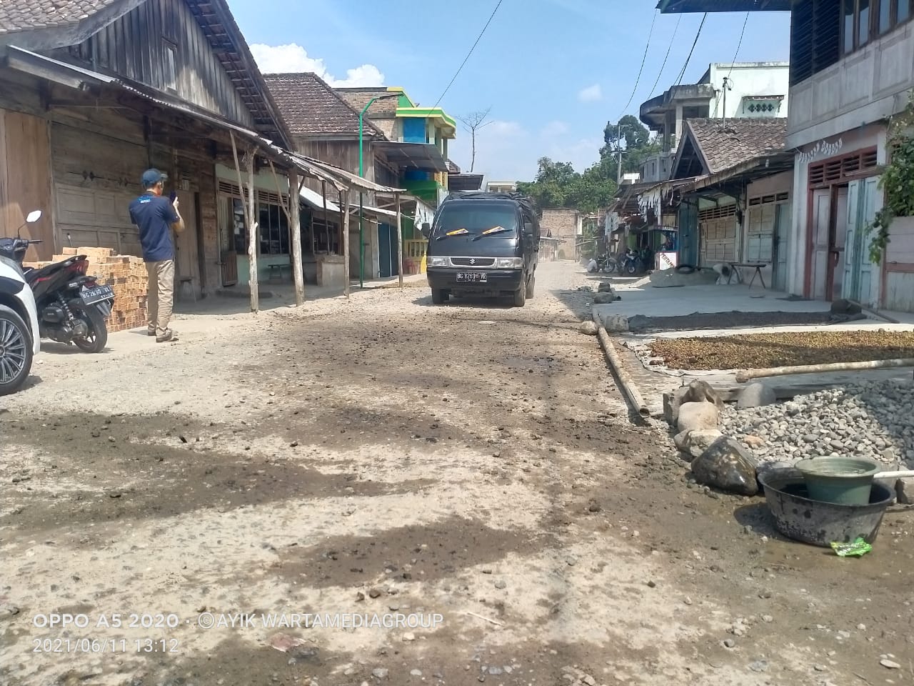 Hasanudin mengungkapkan puluhan kendaraan alat berat yang melintas dengan tonase tinggi di lokasi untuk proses pembangunan Waduk Tiga Dihaji menyebabkan rusaknya jalan yang dilintasi.