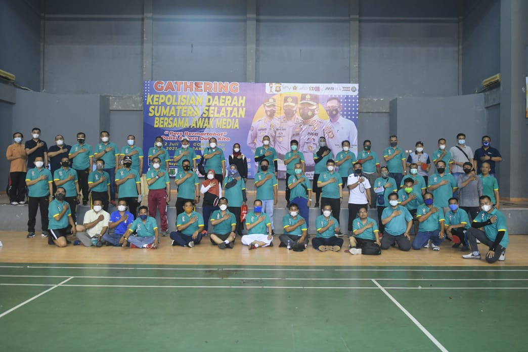PALEMBANG, ENIMTV – Pengurus Serikat Media Siber Indonesia (SMSI) Sumatera Selatan (Sumsel) di bawah komando Ketua SMSI Sumsel, Jon Heri menghadiri Media Gathering yang dilaksanakan jajaran Polda Sumsel bertempat di Stadion Gelora Jakabaring Palembang (JSC), Jumat (2/7/2021).