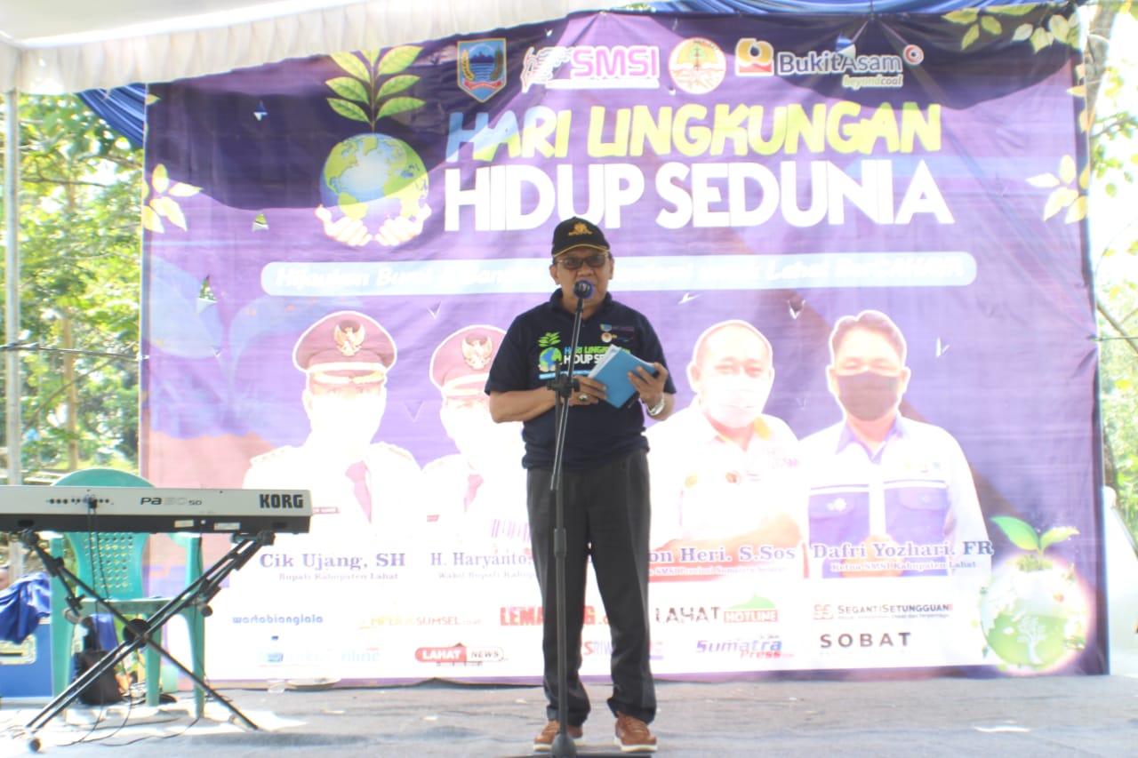 LAHAT, ENIMTV – Perayaan Hari Lingkungan Hidup Sedunia (HLHS) tahun 2021, yang diadakan Pengurus Serikat Media Siber (SMSI) Kabupaten Lahat, PT Bukit Asam Tbk (PTBA), Pemerintah Kabupaten Lahat dan Dinas Lingkungan Hidup (DLH) Lahat berjalan sukses.