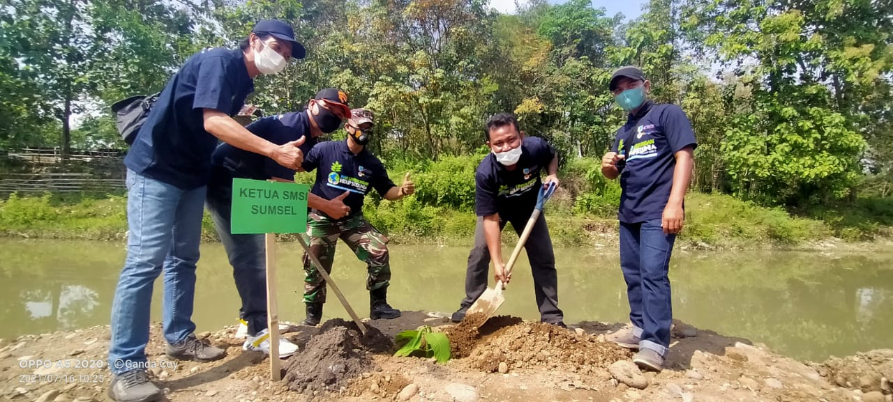 Kemudian acara penanaman pohon di pinggir Sungai Lematang dekat lokasi acara serta penyebaran ribuan Benih Ikan di aliran sungai tersebut secara bersamaan. (SMSI Lahat)