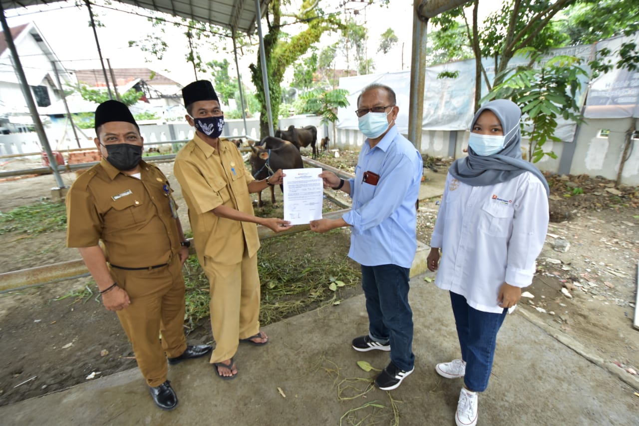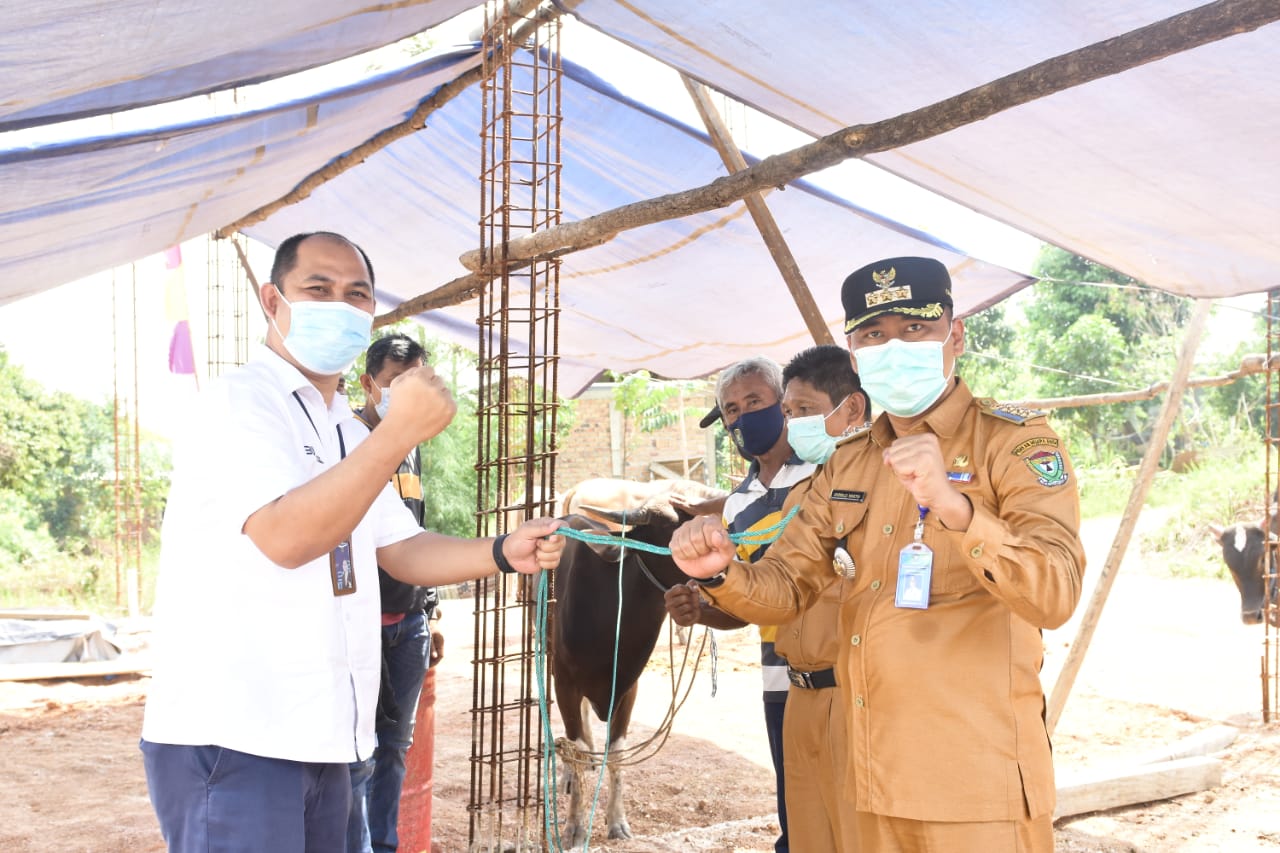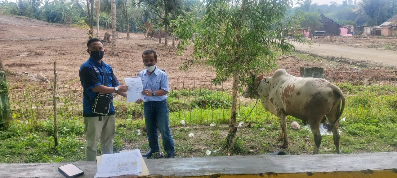Penyerahan hewan kurban secara simbolis diserahkan oleh Ketua Panitia Idul Adha 1442 Hijriyah Ichsan Aprideni selaku Senior Manajer Pengelolaan Aset dan Infrastruktur Sipil Penunjang PTBA kepada Camat Lawang Kidul Andrille Martin, Senin (19/7/2021) di Halaman Tempat Penyembelihan Hewan Kurban RT 9 Kelurahan Tanjung Enim.