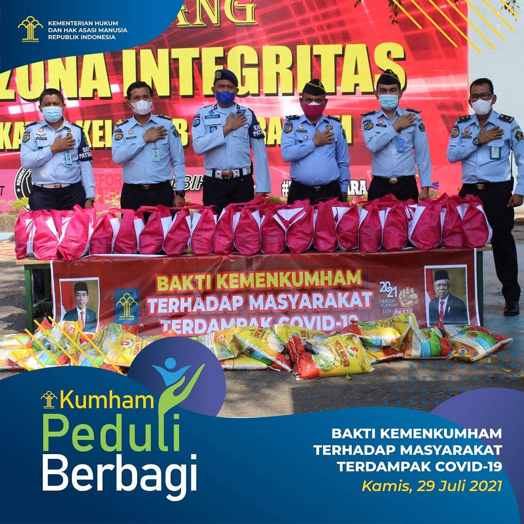MUARA ENIM, ENIMTV – Menteri Hukum dan HAM Yasonna H. Laoly menyerukan kepada seluruh jajarannya dari pusat hingga daerah untuk melaksanakan kegiatan “Kumham Peduli Kumham Berbagi”. Terkait hal itu, Lembaga Pemasyarakatan (Lapas) Kelas IIB Muara Enim menyalurkan bantuan berupa paket sembako kepada masyarakat yang terdampak pandemi COVID-19, Kamis (29/7/2021).