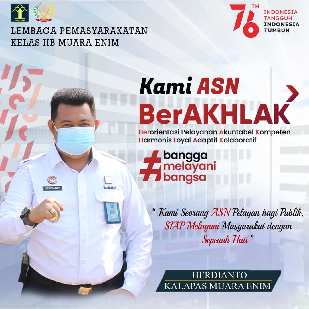 “Dengan Core Values ASN Berakhlak, Lapas Muara Enim akan terus melakukan transformasi menjadi ASN yang Akuntabel, Kompeten, Harmonis, Loyal, Adapti dan Kolaborati,” pungkas Herdianto.