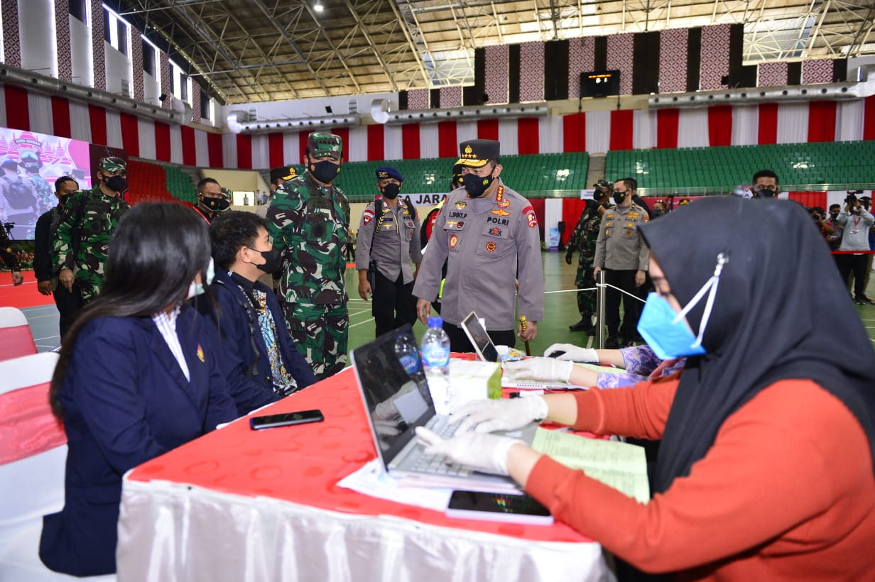 Sebanyak 7.587 vaksinator dilibatkan baik dari TNI, Polri dan relawan tenaga kesehatan. Target hari ini sebanyak 153.800 dosis vaksin disuntikkan ke masyarakat.