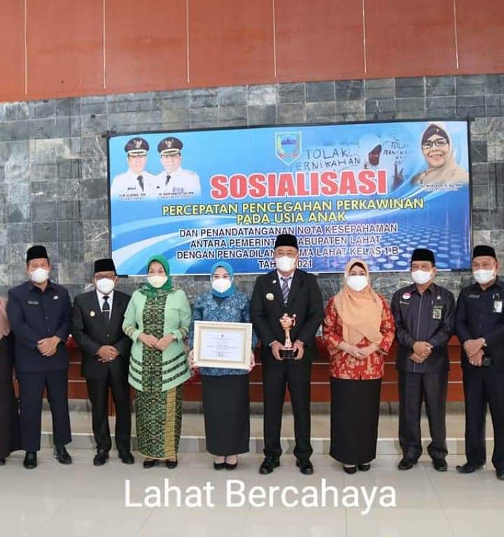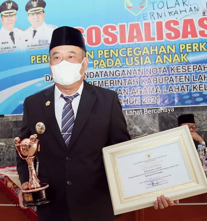 Adapun penghargaan tersebut diserahkan langsung oleh Kepala Dinas PPPA Kabupaten Lahat Hj. Nurlela, S.Ag. kepada Bupati Lahat, Cik Ujang, S.H., Senin (27/9/2021), bertempat di Gedung Pertemuan Pemkab Lahat.