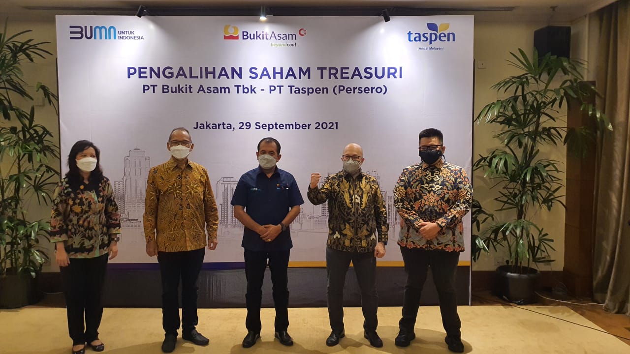 JAKARTA, ENIMTV – PT Bukit Asam Tbk (PTBA), anggota Holding BUMN Pertambangan MIND ID, pada 22 September 2021 telah melakukan pengalihan saham treasuri sebesar 303.148.000 lembar saham.