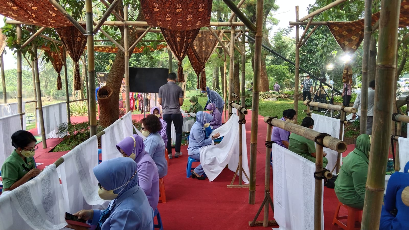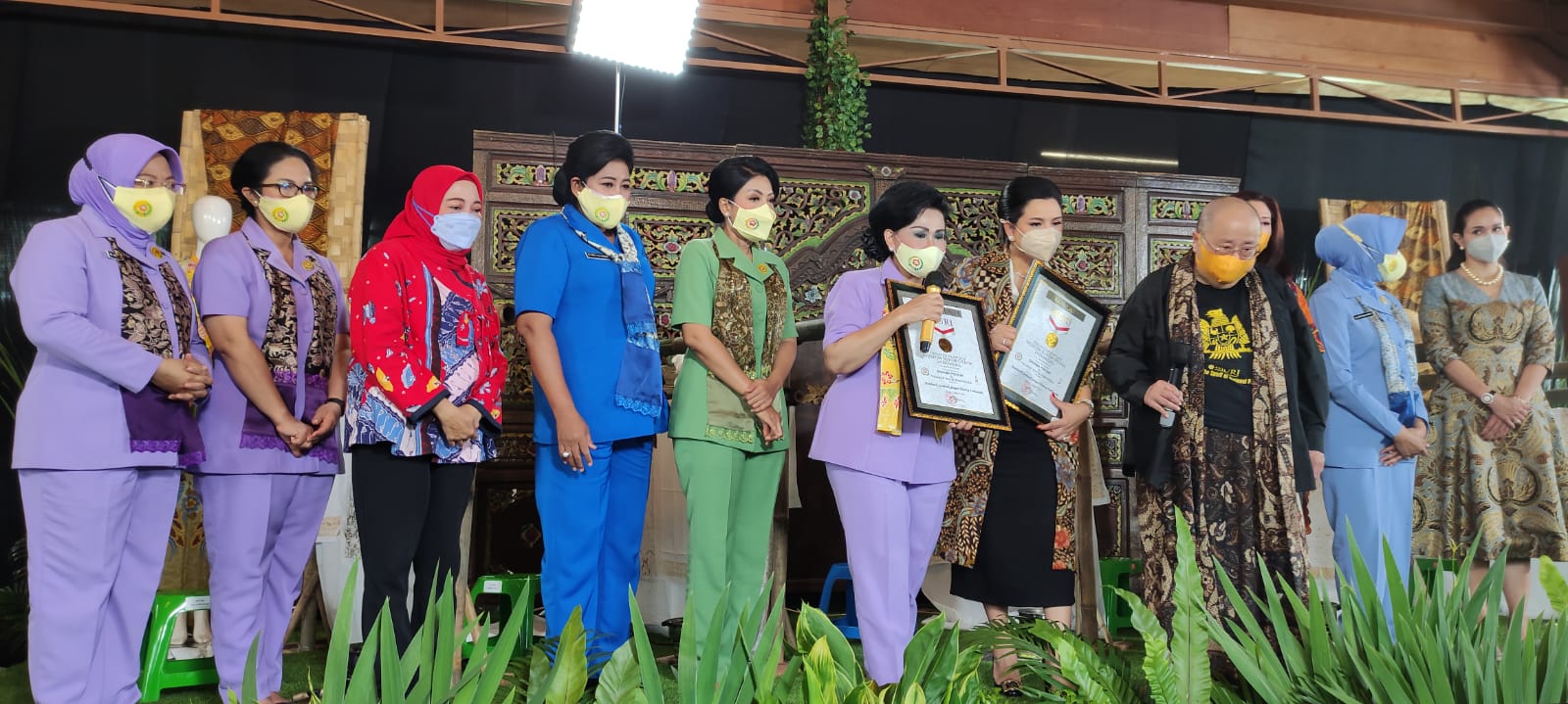 Acara membatik bersama yang diikuti oleh puluhan ribu ibu-ibu Dharma Pertiwi dari seluruh Indonesia dan bahkan dari berbagai belahan dunia kali ini juga mencatatkan rekor MURI sebagai acara membatik bersama yang terbesar.