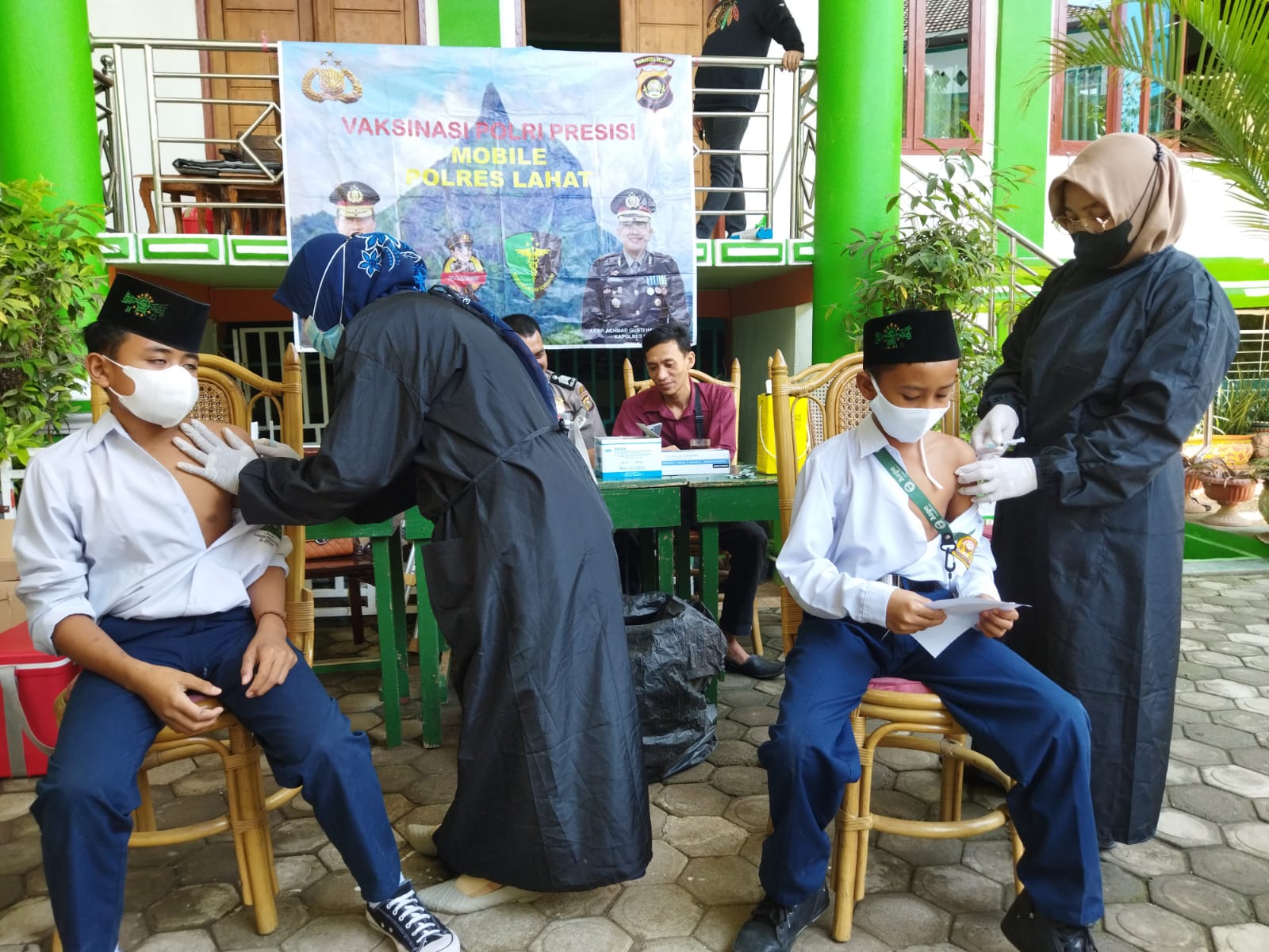 Kegiatan Vaksinasi Mobile Presisi Polres Lahat di Pesantren Al-Fatah Lahat dilaksanakan dengan tetap mematuhi protokol kesehatan. (Endi)