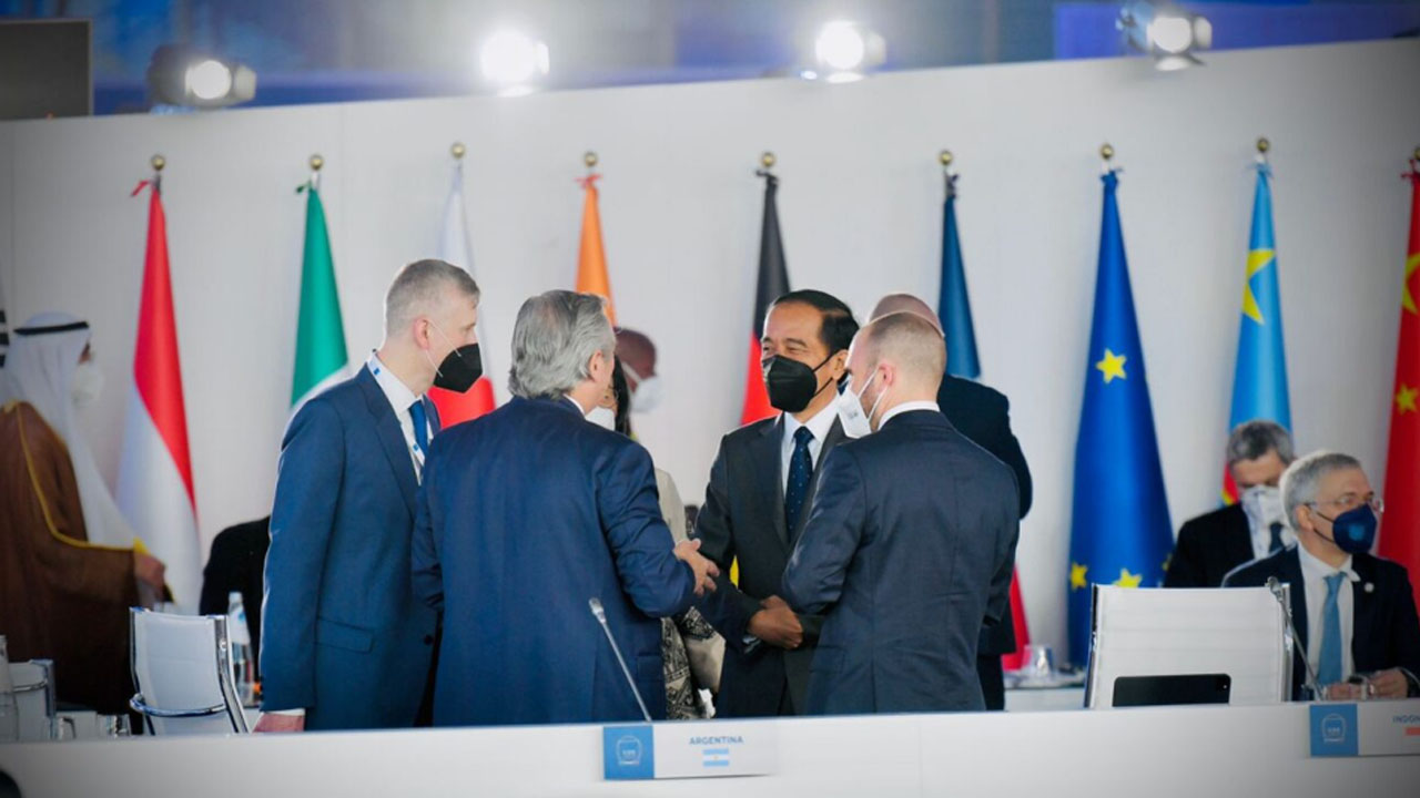 “Demi membangun dunia yang lebih tahan terhadap pandemi dan berbagai guncangan ke depan, Indonesia mengajak untuk memperkuat arsitektur kesehatan global,” ujar Presiden Jokowi yang pada kesempatan tersebut didampingi oleh Menteri Luar Negeri Retno Marsudi, Menteri Keuangan Sri Mulyani, dan Co-Sherpa Kementerian Luar Negeri Dian Triansyah Djani.