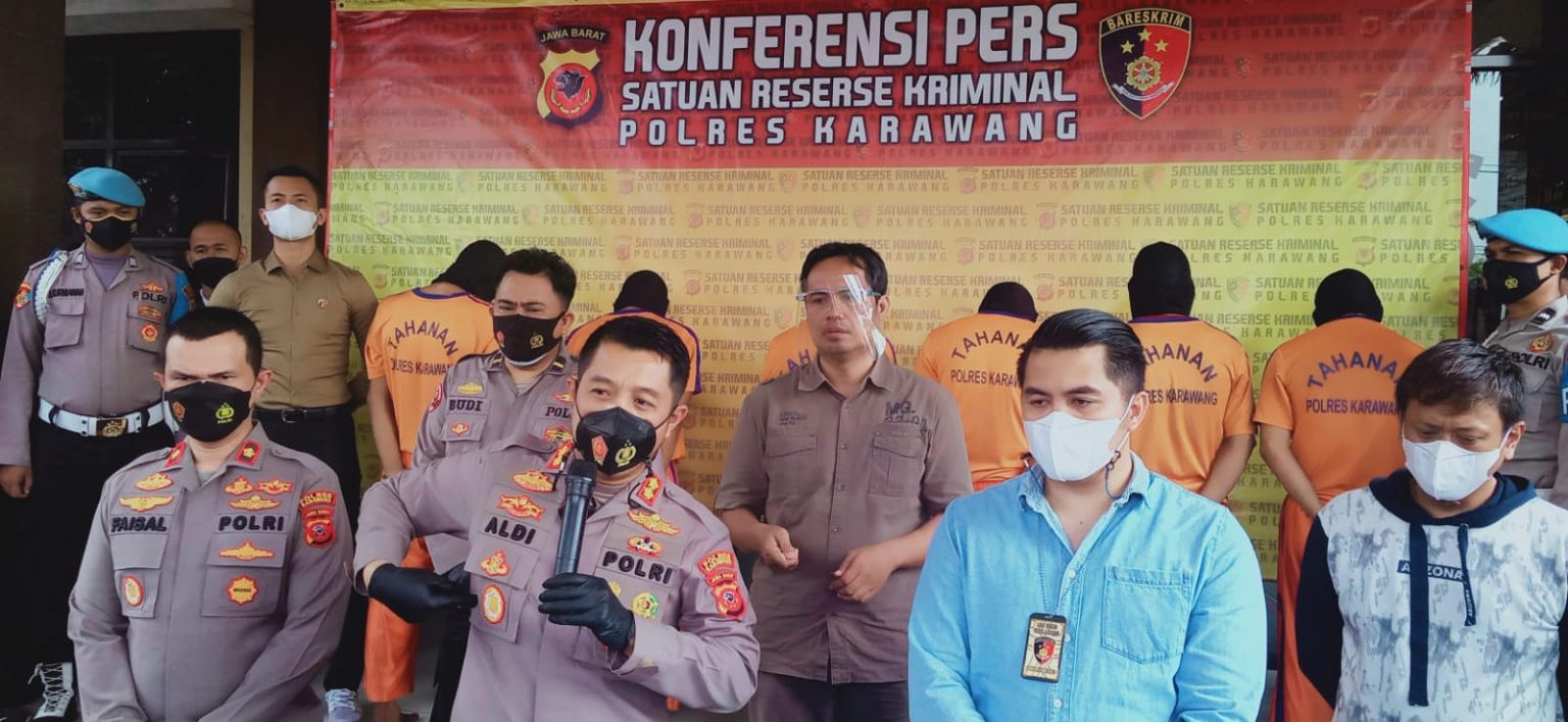 “6 orang tersangka diamankan dan otak dari pembunuhan tersebut adalah istri korban yang berinisial WN,” kata Kapolres Karawang, AKBP Aldi Subarton dalam konferensi pers, Sabtu (6/11/2021).