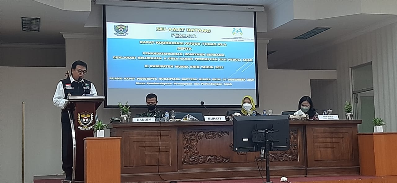 Dalam sambutannya, Pj Bupati menegaskan komitmen bersama mulai dari tingkat desa, kecamatan dan Dinas Pemberdayaan Perempuan dan Perlindungan Anak (DPPPA) harus menjadi yang terbaik, terutama di tingkat Provinsi untuk mewujudkan Kabupaten Muara Enim menjadi Kabupaten Layak Anak (KLA).