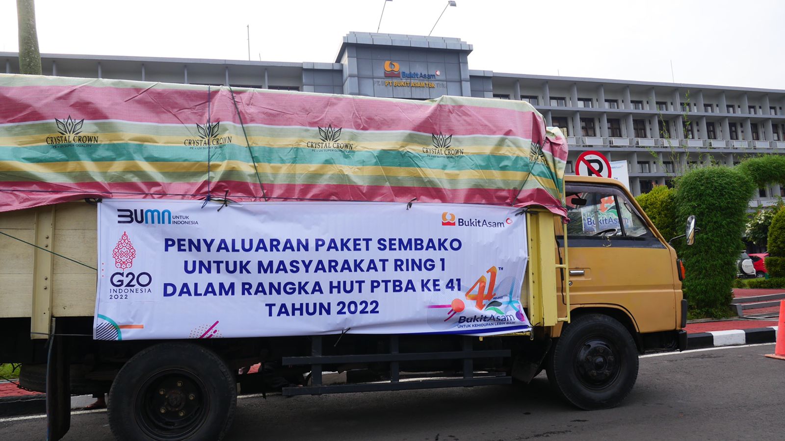 Pelepasan distribusi bantuan sembako dipimpin langsung General Manager Pertambangan Tanjung Enim PTBA, Venpri Sagara, di Halaman Kantor CSR-PKBL PTBA Tanjung Enim.