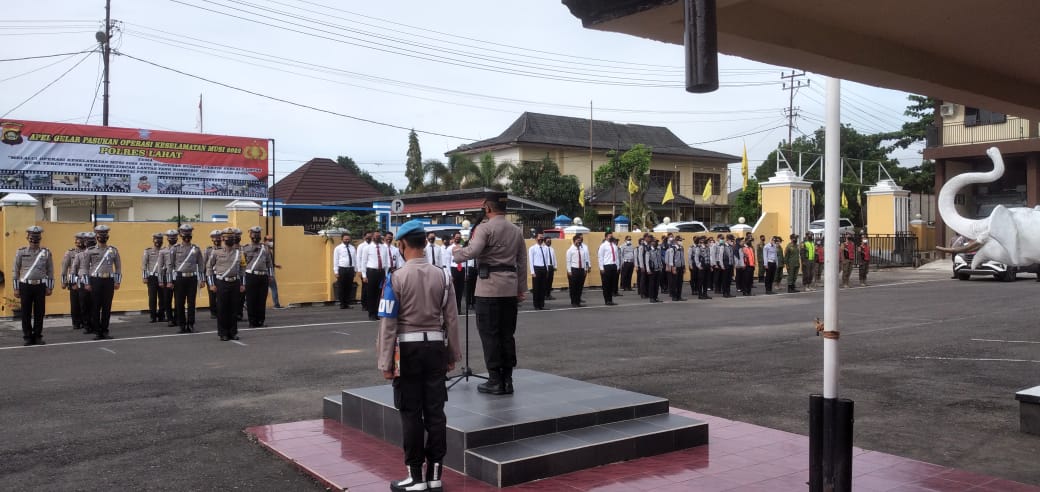 LAHAT, ENIMTV – Kapolres Lahat AKBP Eko Sumaryanto, S.I.K. memimpin Apel Gelar Pasukan Ops Keselamatan Musi 2022 dengan tema “Kita wujudkan budaya tertib berlalulintas guna terciptanya kamtibcarlantas yang kondusif serta tertib mematuhi prokes guna memutuskan rantai penularan Covid-19”. Acara bertempat di Mapolres Lahat, Selasa (1/3/2022).