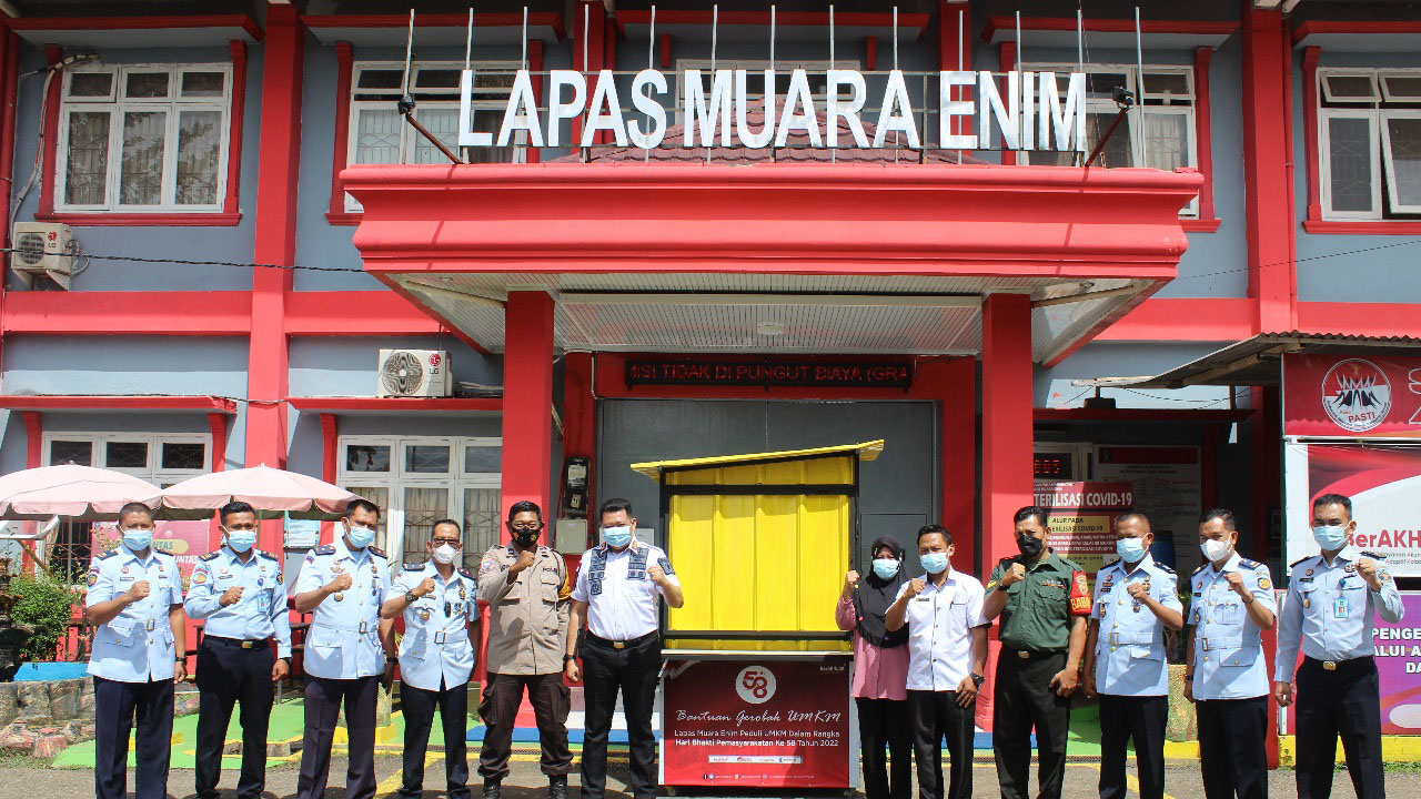 MUARA ENIM, ENIMTV – Dalam rangka menyambut Hari Bhakti Pemasyarakatan (HBP) ke-58, Lapas muara enim memberikan bantuan berupa gerobak full set siap pakai kepada salah satu pelaku Usaha Mikro Kecil Menengah (UMKM), Ibu Herlina yang berdomisili di Desa Muara Lawai, Kec. Muara Enim, Kab. Muara Enim,