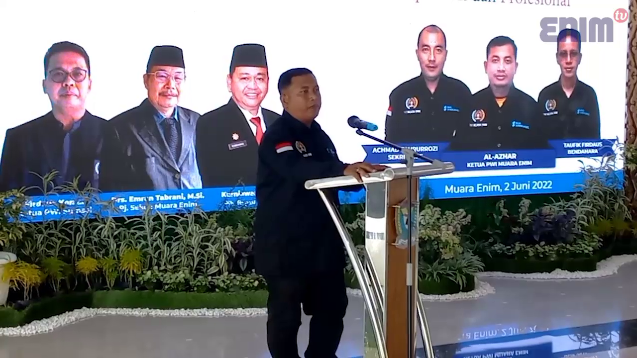 MUARA ENIM, ENIMTV – Pengurus Persatuan Wartawan Indonesia (PWI) Kabupaten Muara Enim periode 2022-2025 secara resmi dilantik, Kamis (2/6/2022).