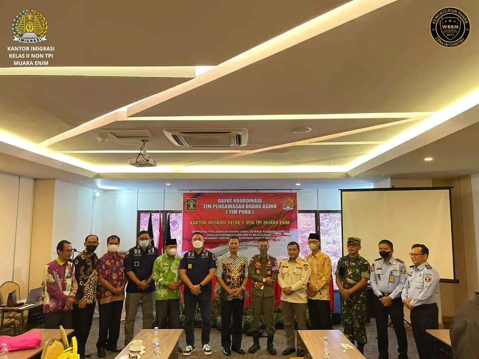 LUBUKLINGGAU, ENIMTV – Kantor Imigrasi Muara Enim Kemenkumham Sumsel mengadakan Rapat Koordinasi (Rakor) Tim Pengawasan Orang Asing (Tim PORA) yang diikuti oleh 3 kabupaten dan kota, dilaksanakan di Hotel Dafam, Lubuklinggau, Jumat (10/6/2022).