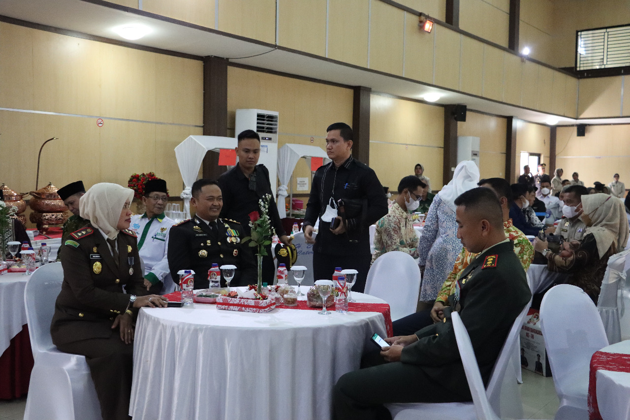 Selesai upacara virtual, Kapolres Lahat AKBP Eko Sumaryanto didampingi Wakapolres Kompol Feby Febriyana dan Forkopimda langsung menuju Gedung Kesenian Lahat guna memgikuti prosesi tasyakuran HUT Bhayangkara ke-76 bersama Forkopimda Lahat, tamu undangan, para PJU, Kapolsek, Perwira dan Bintara Polres Lahat.