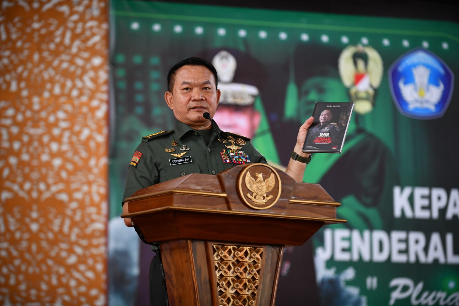 JAKARTA, ENIMTV – Di hadapan para mahasiswa dan civitas akademika Universitas Jambi (Unja), Kepala Staf Angkatan Darat (Kasad) Jenderal TNI Dr. Dudung Abdurachman menekankan 4 peran penting mahasiswa dalam menjaga persatuan dan kesatuan bangsa Indonesia. Hal tersebut dikatakan Kasad saat memberikan kuliah umum bertema “Pluralisme Dalam Bingkai NKRI” bertempat di Gedung Balairung, Universitas Jambi, Selasa (19/7/2022).
